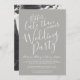 Typographic script modern simple white text on a mid-grey colour background design post-wedding invitation reads better late than never wedding party. Simple modern contemporary design, personalise with your own wedding after-party belated wedding venue, brides and grooms names and party details on the front and your favourite wedding photo from your wedding day on the reverse. Matching wedding products and other colour options available in the store. © Design by Sarah Trett for www.mylittleedenweddings.com