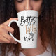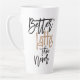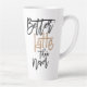 Coffee humour quote on your Latte mug! An amusing play on words Better Latte Than Never in an elegant script typography mostly in black and ‘latte’ in a coffee colour ....of course!