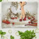 This design features A Beautiful red themed female demon scene with a black cat sitting on pillar surrounded by red apples and a snake. Better the devil you know.