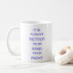 This mug designed by artist Anne Harwell in perwinkle type reads "It is better to be kind than right".