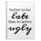 Better to be late than to arrive ugly notebook