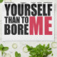 Quote: "Better to bore yourself than to bore ME", in very LOUD TEXT, like some of the retro 80-ies/90-ies style vintage shirts. Works best on a white or black background, but please experiment yourselves, as the background colour can be changed. Some products also allow the white outline to be switched on/off.