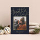 A simple and heartfelt holiday photo card that sets your square photo on a midnight navy blue background with a sweet message. "Together is our favourite place to be" appears in gold foil script and block lettering, with your custom holiday greeting, family name, and the year beneath. A simple and elegant choice with gold foil accent printing for your Christmas 2022 cards.