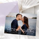 Elegant photo engagement announcements featuring your horizontal photo with the phrase "better together" in a light purple script connected by a heart. Personalise the front of the announcement by adding your names and additional details such as the wedding website, location, etc.