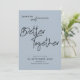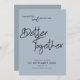 A modern informal design to ask your guests to save your wedding date with a handwriting style black set script for Better Together in the centre to coordinate with the "and" in the same set script between your names. The rest of the text can be easily personalised. A darker blue background is on the back. Text and background colours can be changed to a different colours if you wish via the customise further option.