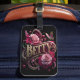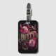 A gold and maroon sign with the name Betty in ornate script, surrounded by pink roses, red flowers, and a butterfly.