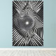 A hypnotic optical illusion where black and white lines intertwine, forming a vortex that seems to move and breathe. The artwork evokes the feeling of crossing dimensions, balancing visual chaos and geometric harmony in perfect sync.