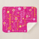 Cute originally designed text pattern name and graphic flowers personalised blanket. This bright pink, white and yellow text typographical blanket can also be customised with your own name, currently reads Beverley. Other names and name lengths available or contact me for name requests. Original art and design by Sarah Trett for www.mylittleeden.com