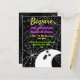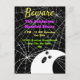 Beware Black with White Spider Webs and cute Modern Ghost Fun and Friendly Frightful Halloween Party / Haunted House Party. postcard invitation