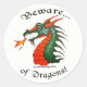 Linda Baysinger Peck's painting of a green dragon, with text that reads "Beware of Dragons!" For those who love Renaissance Faires, Mediaeval Faires, fantasy and mythical beasts.
