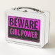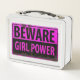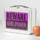 BEWARE Girl Power - Pink Black Metal Danger Sign Lunch Box