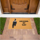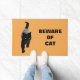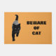 Photography of a cute black cat on an orange background with the text Beware of Cat.