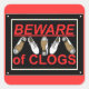 Clogging can be dangerous. Beware! A funny sign design for the clog dancer in your life.