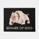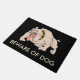 Warn your guests with a "Beware of Dog" doormat. Shown here with a black background, you can change the background colour to the colour of your choice by selecting the "customise it" button and selecting another background colour. You can also edit the text shown in the design template if you desire.