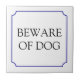 Patterned after a street sign seen in Italy. Narrow blue border with reverse circle filets at the corners. Ceramic number tiles. You you can customise with the message you need for your ceramic tile or mosaic sign. Beware of dog.