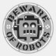 They may be serving us now but eventually they will try to take over the world. You know this is true because you've seen it many times in sci-fi movies. You need to warn everyone you can. An easy way to do that is by sticking these stickers everywhere. Don't wait until it's too late. Humankind needs you. Note: you can make this sticker whatever colour you want when you customise it.