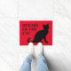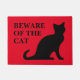 Beware of the cat funny door mat for cat owner. Cute black kitten design with humorous quote. Make your own custom doormat with red or custom color background. Little kitty design. Add your own welcome message, family name, monogram, surname or fun quote. Cute gift idea for crazy cat lady, cat lover, cat person, pet owner, friends, family, mom, sister, aunt, grandma etc. Personalized doormat warning sign template. Create your own entry mat / rug for front door / entryway or hall / porch, garden, shop, store, business, office etc. Customizable outdoor home decor / decorations for your house. Available in small and big large size. Upload an an image of your pet or animal optionally.