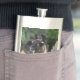 The product is a good size and came exactly as it was pictured.  The lid is not attached to the flask, which could be dangerous on drunken nights... The print came out surprisingly well and looks very sharp.  Would definitely recommend.