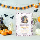 Unleash the spooky spirit with these enchanting Halloween party invitations! Featuring an adorable cat bewitched into donning a witch’s hat and nestled within a pumpkin, these invites are sure to charm your guests. The whimsical watercolor design is bordered by playful Halloween motifs that set the tone for an unforgettable night. Customise with your party details to make it truly unique.