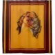 This is an alluring art deco bust portrait of a beautiful blonde of the early 1930s, illuminated with golden tones and beautiful red hues and accents of blue, violet, rose and green tone from multiple light sources that are coming from below and above her.