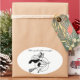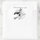 Vintage black and white drawing of a witch on her broomstick saying "Who says all witches are ugly?"