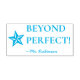 This motivating rubber stamp design features the positive message "BEYOND PERFECT!" and a custom teacher's or educator's name. It also features a decorative star shape. It could be used by a school teacher or educator when marking assignments, to acknowledge that a student has done well.