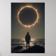 A powerful scene of cosmic contemplation. Beneath a blazing eclipse, a lone figure stands by the sea, evoking reflection on the universe and the unknown. Perfect for spaces that embrace soulful art, visual impact, and depth.