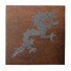 Bhutanese dragon graphic in grey with brown leather texture background.