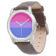 Make a bold statement with this stunning Bisexual Pride Flag watch featuring a classic brown leather strap. The rich pink, purple, and blue stripes of the bi flag are beautifully displayed on the watch face, offering a harmonious contrast to the warm tones of the brown leather. This stylish timepiece seamlessly blends classic design with modern pride, perfect for everyday wear or special occasions. Celebrate your identity or show support for the bisexual community with this timeless accessory that speaks volumes without saying a word.
