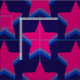 Fabric with a seamless pattern with stars in the colours of the bisexuality pride flag, on a blue background; bi pride crafting supplies