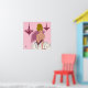 Our beautiful Bianca with blonde hair, dressed in white and rose. Bianca is adorned with jewels and holds a dusty rose feathered fan. Burgundy chandeliers on a light pink background.