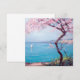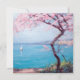 This design features a painting by the Romanian Post-Impressionist artist Kimon Loghi (1871–1952). It depicts a beauty beach scene in the fashionable French city of Biarritz, which is located on the Bay of Biscay, on the Atlantic coast of southwestern France. It is a luxurious seaside tourist destination known for its elegant lifestyle and glorious beaches. In the foreground of the image can be seen a large cherry blossom tree. There is yacht sailing on the water.