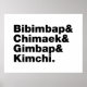 Bibimbap and Chimaek and Gimbap and Kimchi. - Hangug Eumsig.