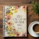 Inspirational scripture notebook, journal designed with floral wreath. It features Bible Verse Psalm 84:10 "Better is one day in your courts than a thousand elsewhere"