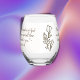 Monogrammed for you to insert your own Bible verse if you so choose on this stemless wine glass. This brown and white, botanical, minimalist stemless wine glass has the Bible verse, "But seek first the kingdom of God and his righteousness, and all these things will be added to you." - Matthew 6:33.