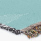 A quality printed throw has its advantages. This is a much finer weave throw than its loopier cousins, and though lighter, it is worth the investment for custom room accessorizing. The back is much prettier than the typical brown, and the fringe on the long sides very vivid, the selvage nicely done. Before photographing, I washed the throw in cold water, delicate, with a thicker woven throw the same size. On tumble dry low, this throw was dry in half the time as the other. This is a very practical quality if you use throws for furniture covers or to wrap up in frequently. The sleekness of the fabric makes it a great layer for accenting or protecting without the feeling of sitting on too much stuff. Perfect for napping or when you feel a light chill coming on. The color printing is beautiful and on this fabric, matched the design and color of my Photoshop image. This is an advantage for blending room fabrics and colors. The fringe on the short sides prints the colors from the design image and therefore varies from the side fringe. I streaked a white fractal line through the plaid pattern to give the illusion of weaving. This printed as crisp as an illusory thread, and put some white in the short side fringe, showing another advantage of print vs loomed- for artistic purposes, line lines, detail, and color integrity can be planned and preserved. My loomed throws have color limitations and more of a needlepoint texture. Print throws reproduce an exact image. The throw felt a little stiff straight out of the package, but this went away in the first delicate wash. Of course I searched the wash water for ink or bleeding and there was none.