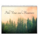 Christian calendar depicts a variety of beautiful mountain photographs and watercolor art. It features encouraging inspirational quotes and Bible Verses.