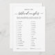 Beautiful design. Fun game for a Bridal Shower. Imagine my surprise when there was no “cheat” sheet. I contacted Zazzle for help but their ideas were to contact the developer. Haha there is no contact button. I ended up Googling the game and coming up with my own solution. Cute game but maybe downloading it via Etsy would have been a better idea. .