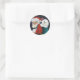This sticker features a reproduction of my original oil painting of a bichon frise and Santa Claus.