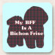 Best Friends Forever. Dog lovers know that the best friend they can have is that devoted canine pal. Your dog thinks you are perfect,even on your worst hair day! Our BFF products are available for 225 different dog breeds. The text reads, My BFF is your breed, and is placed inside of tartan plaid dog breed silhouette. Available on apparel items for the whole dog loving family. Other merchandise includes caps, buttons, totes, mugs, and more fun items. Unique gifts for any special occasion, or treat yourself!