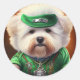 Bichon Frisé Dog Driving Bike St. Patrick's Day Classic Round Sticker