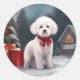 Bichon Frise Dog in Snow Christmas Classic Round Sticker