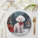 Bichon Frise Dog in Snow Christmas Paper Plate