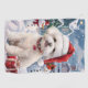 This festive design captures the joyful spirit of the holiday season, featuring an adorable pup wearing a Santa hat. The dog is nestled in a winter wonderland, complete with a snowman, a decorated Christmas tree, and beautifully wrapped presents. Snowflakes gently fall, adding a magical touch to the scene, while the vibrant colours of the holiday decorations create a warm and cheerful atmosphere.