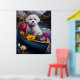 Bichon Frise on a Paddle: A Scenic Adventure Poster