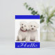 Aww...who can resist the cute face of a Bichon Frise puppy dog? This charming postcard features a portrait of two Bichon Frise puppies with a royal blue border highlighting a Hello greeting. These sweet Bichon puppies are ready to help you send greetings to family and friends.