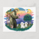 The patron saint of animals and a loved figure that crosses denominational lines, St. Francis is shown here with two Bichon Frise. The figure of Saint Francis itself was adapted from Giotto's 14th century masterpiece.