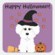 Whimsical and Fun Bichon Frise Dog Witch Customisable Text Halloween Stickers
