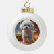 Bichon Frise With Christmas Lights Holiday Ceramic Ball Christmas Ornament