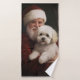 Bichon Frise with Santa Claus Festive Christmas Bath Towel Set